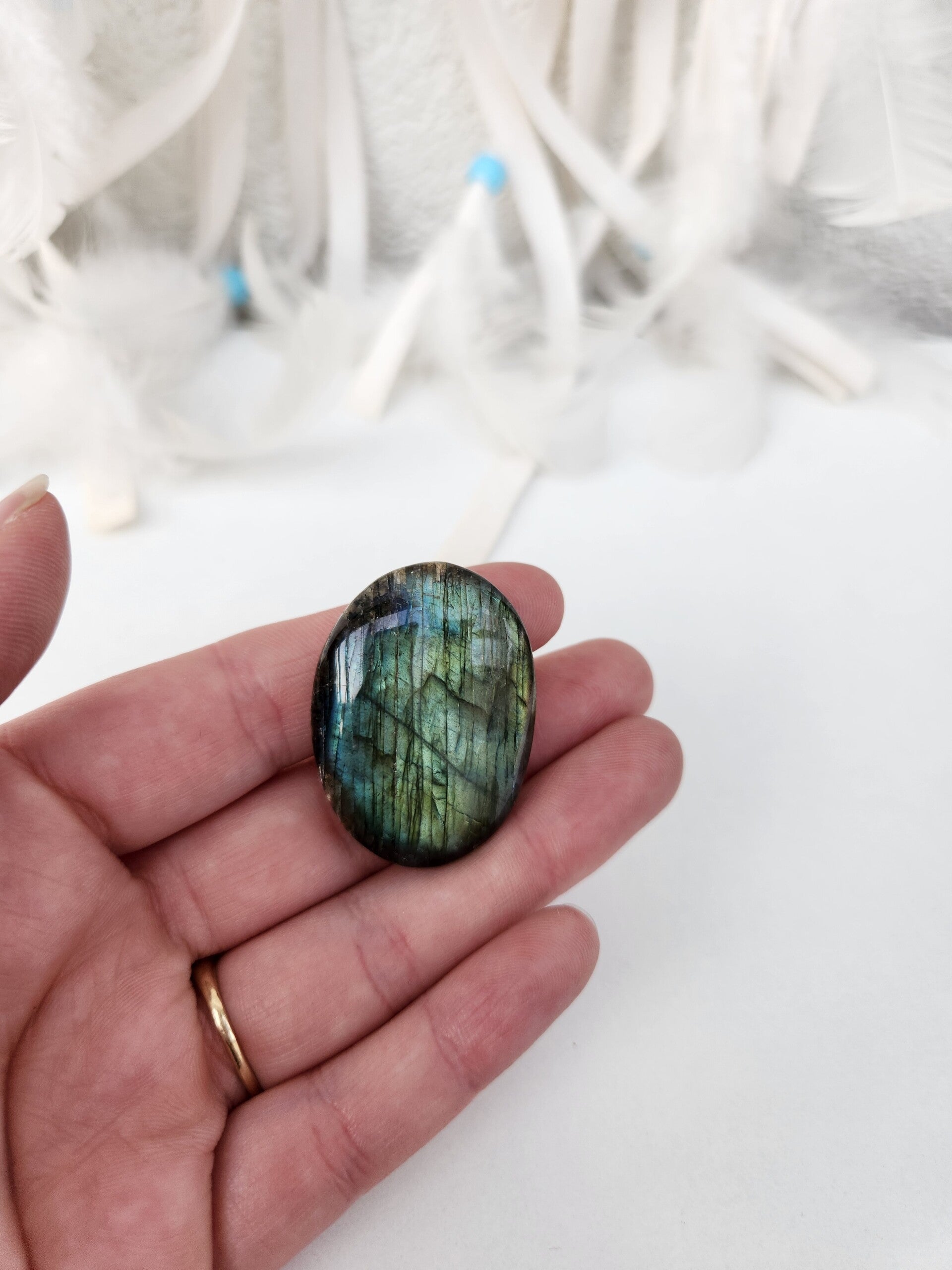 Prachtige Labradoriet zaksteen. Allemaal met mooie blauwe flash!